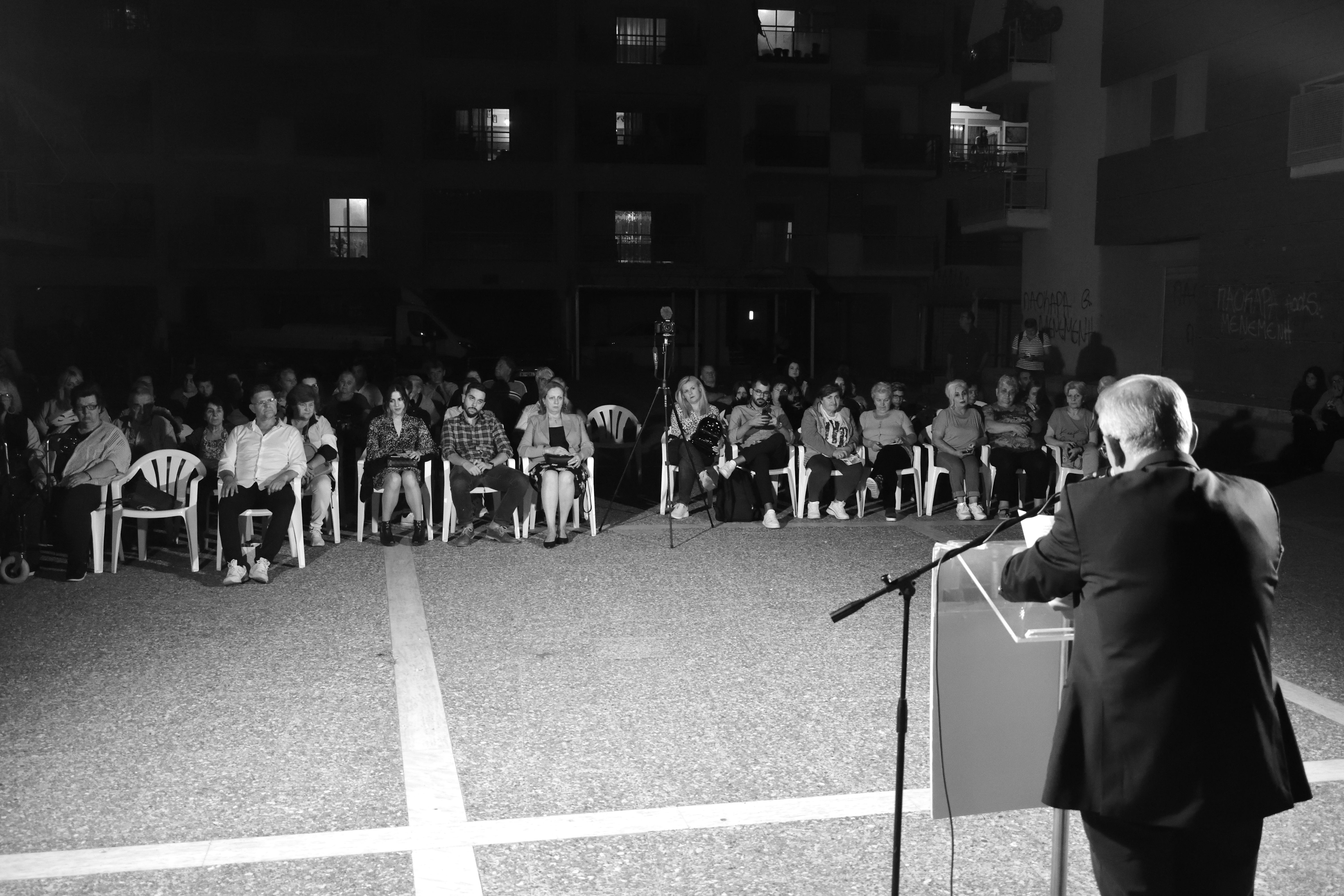 Ξαναβρισκόμαστε, ξανασυναντιόμαστε, όπως σ’ όλες τις γειτονιές του ενιαίου δήμου μας, έτσι κι εδώ, 3 ημέρες πριν τις δημοτικές εκλογές.
