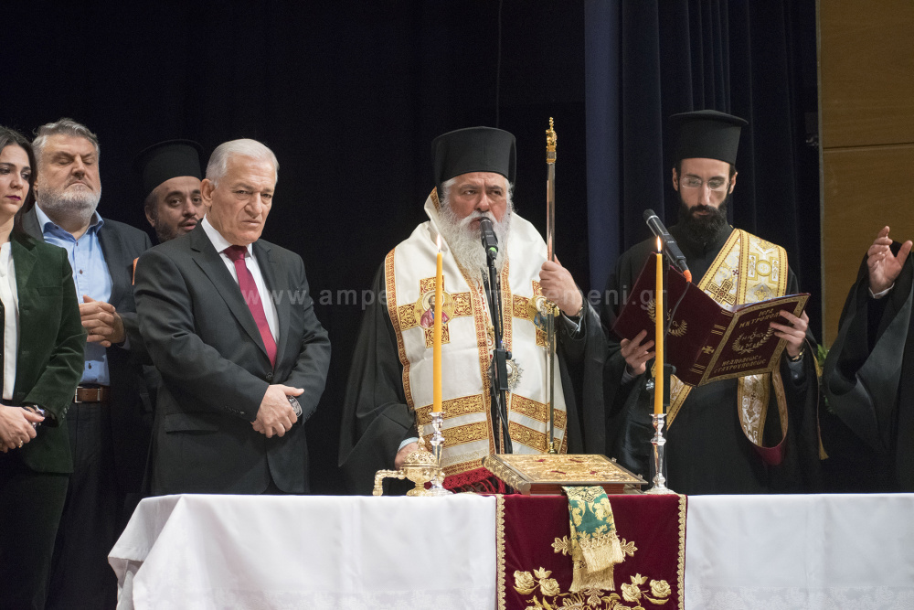 Σεβασμιώτατε, σας ευχαριστούμε θερμά γιατί είσθε συμπαραστάτης μας, συμπαραστάτης όλων των δήμων, συνοδοιπόρος και πολύτιμος βοηθός στα δίκαιά αιτήματά μας. Σας ευχαριστούμε επίσης γιατί η Μητρόπολή μας υπό την δική σας διαποίμανση και πνευματική ηγεσία, σιτίζει καθημερινά πάνω από 8.000 αναγκεμένους συνανθρώπους μας και προσφέρει δωρεάν σημαντικότατο κοινωνικό και προνοιακό έργο. Μνημονεύουμε και του ονόματος του Δημητρίου Καραπάντσιου μεγάλου δωρητή του δήμου μας που πρόσφατα έφυγε από τη ζωή.