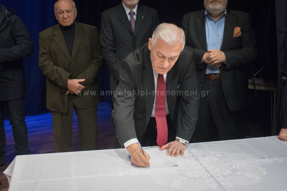 Ο επανεκλεγείς Δήμαρχος σε σύντομη ομιλία του τόνισε μεταξύ άλλων: «Θα αγωνισθούμε με βάση το πρόγραμμα δημοτικής μας δράσης που αναπτύξαμε προεκλογικά. Θα επιδιώξουμε τη συνεργασία με όλες τις παρατάξεις του δημοτικού συμβουλίου. Γιατί αυτόν τον τόπο τον έχουμε όλοι μαζί και έτσι όλοι μαζί πρέπει να βαδίσουμε. Σας διαβεβαιώνω ότι θα συνεχίσω να είμαι δήμαρχος όλων των κατοίκων του δήμου χωρίς διακρίσεις και με τήρηση των αρχών της δικαιοσύνης, της νομιμότητας και του ανθρωπισμού. Με σεβασμό και έμπρακτη αγάπη προς τους πολίτες και την πόλη μας. Ταυτόχρονα με τον αγώνα για τα προβλήματα του δήμου μας θα αγωνισθούμε και για τη Δυτική Θεσσαλονίκη ευρύτερα και για την αυτοδιοίκηση γενικότερα. Για την βελτίωση της θεσμικής και οικονομικής της θέσης. Για την ανάκτηση του εδάφους που έχει χαθεί λόγω των μνημονίων και του δυσμενούς θεσμικού πλαισίου που έχει επιβληθεί. Θα συνεργασθούμε με την κεντρική εξουσία. Θα συγκρουσθούμε όμως όταν οι ασκούμενες πολιτικές έρχονται σε αντίθεση με το συμφέρον της αυτοδιοίκησης και του τόπου μας».