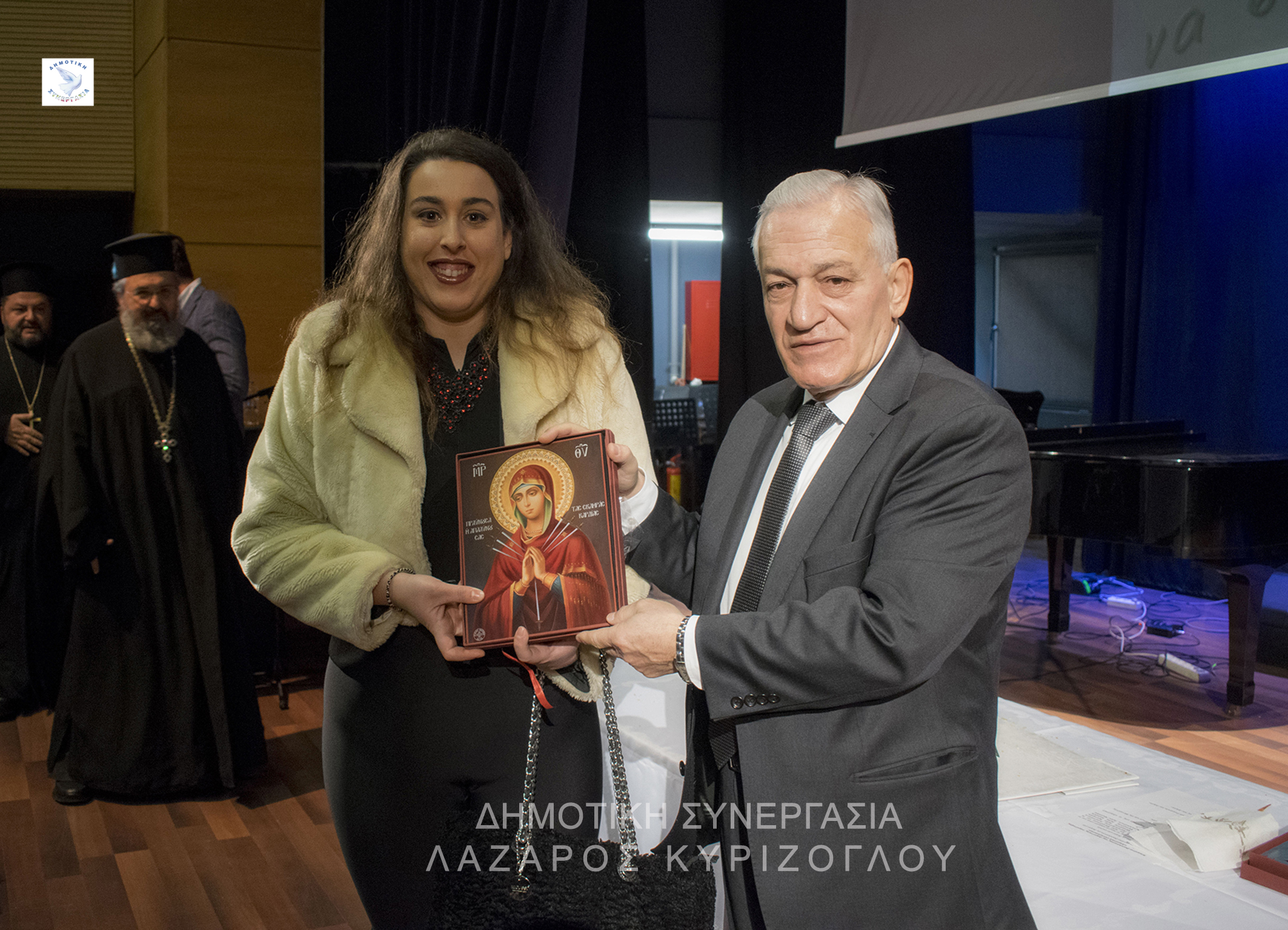 Τα φλουριά ήτανε δύο όπως και οι τυχεροί. Στην μεγάλη βασιλόπιτα το φλουρί έτυχε στον Πρόεδρο του Δημοτικού Συμβουλίου κ. Αλέξανδρο Κουσενίδη και στα βασιλοπιτάκια τυχερή ήτανε η κ. Στέλλα Γράβα. Ο κ. Κουσενίδης και η κ. Γράβα παρέλαβαν από το Δήμαρχο από μία εικόνα της Παναγίας.